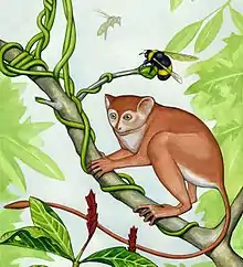 Archicebus is a genus of fossil primates that lived in the early Eocene forests (~55.8–54.8 million years ago) of what is now Jingzhou in the Hubei Province in central China, discovered in 2003.[1][2] The only known species, A. achilles, was a small primate, estimated to weigh about 20–30 grams (0.7–1.1 oz), and is the only known member of the family Archicebidae. When discovered, it was the oldest fossil haplorhine primate skeleton found,[3][4] appearing to be most closely related to tarsiers and the fossil omomyids, although A. achilles is suggested to have been diurnal, whereas tarsiers are nocturnal. Resembling tarsiers and simians (monkeys, apes, and humans), it was a haplorhine primate, and it also may have resembled the last common ancestor of all haplorhines as well as the last common ancestor of all primates.[5] Its discovery further supports the hypothesis that primates originated in Asia, not in Africa.[6]