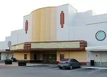 As Houston and the rest of the country recovered from the Great Depression, art-deco style theaters of the late 1930s were built in many residential neighborhoods across the city. In addition to the River Oaks, neighborhood movie theaters like the Alabama, Tower, Capitan, and Ritz-Majestic Metro were several of the venues where Houstonians sought entertainment.[103] The Alabama serves as a prime example of adaptive reuse, the repurposing of architecture considered obsolete in terms of modern usage. Opening as a Bookstop bookstore in 1984 after the original theater closed, the building was later converted into Houston's first Trader Joe's specialty grocery store in 2012.[104] The grocer took pains to preserve much of the building's original architectural splendor, including its original terrazzo-tile front entrance as well as its second-floor balcony.[105]