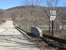 Arden Valley Road is a scenic road located in Southfields, New York, in the United States, that travels through Harriman State Park and is owned by the Palisades Interstate Park Commission. At 5.2 miles (8.4 km) long, it begins at New York State Route 17 (NY 17) in Southfields and ends at Seven Lakes Drive in Harriman State Park. Arden Valley Road also serves a trout stocking area for the Ramapo River.[3] The road is located entirely in Orange County and is home to the Elk's Pen Trailhead in Harriman State Park. In 1921, plans arose by the commission to construct the road, which was completed the same year and stretched along the borderline with the Harriman estate. Major William A. Welch ordered 75 elk from Yellowstone National Park to be placed in a wired cage between Arden and Southfields in 1919. The elk eventually disappeared from the pen by 1942, and the area became the current Elk's Pen trailhead for trails within Harriman State Park.