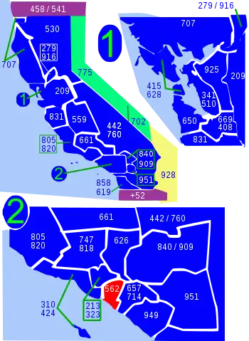 - NANPA area code map of California