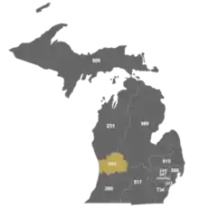| West: Lake Michigan, 262, 414 | area code 616 | East: 517, 989 |