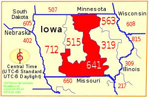 | West: 515, 712 | area code 641 | East: 319, 563 |