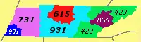 | West: 870 | area code 901 | East: 731 |