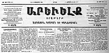 ![]() The September 22, 1899, front page of Arevelk | |