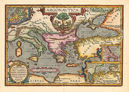 The story of the expedition seems to have been known to the author of the Odyssey (xii. 69, &c.), who states, that the ship Argo was the only one that ever passed between the whirling rocks (petrai planktai Πλαγκταὶ; Planctae, after the encounter with the Clashing Rocks). Jason is mentioned several times in the Iliad (vii. 467, &c., xxi. 40, xxiii. 743, &c.), but not as the leader of the Argonauts. Hesiod (Theog. 992, &c.) relates the story of Jason saying that he fetched Medeia at the command of his uncle Pelias, and that she bore him a son, Medeius, who was educated by Cheiron. The first trace of the common tradition that Jason was sent to fetch the golden fleece from Aea, the city of Aeëtes, in the eastern boundaries of the earth, occurs in Mimnermus (Strabo, Geography, 1.2.40), a contemporary of Solon; but the most ancient detailed account of the expedition of the Argonauts which is extant, is that of Pindar (Pythian Odes iv.)[13]