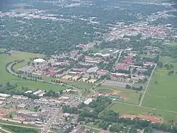 The Second District Agricultural School was created by Act 100 of 1909 of the Arkansas General Assembly. It was decided on February 10, 1910, to found the school in Russellville.[3] Construction of the school's Main Building began on April 10, 1910,[4] with contracts for additional buildings let in June 1910.[5] On October 26, 1910, the first classes were held in Russellville. The original purpose of the school was to offer a secondary (or high school) education in agricultural and technical subjects.[6] Later on, the school took on the first two years of college instruction, and the school's name was changed to Arkansas Polytechnic College by the General Assembly in 1925 to reflect this change in purpose. The school became a two-year junior college in 1927 and, at the end of the 1929-1930 academic year, stopped offering high school classes.[7]