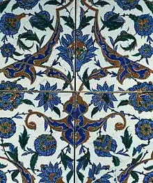The distinctive flame red is a striking feature of the mature style of Iznik pottery. It comes from an iron-rich red earth, or bole, found in Armenia.