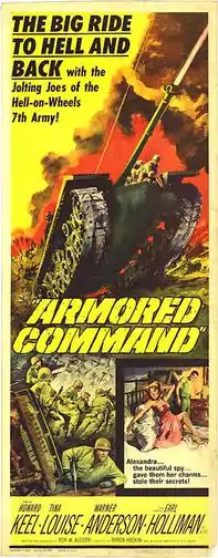 Armored Command is a 1961 American war drama film directed by Byron Haskin and starring Howard Keel and Tina Louise. It was filmed in Hohenfels, Bavaria, but takes place in the Vosges Mountains during the Southern France campaign.[1]
