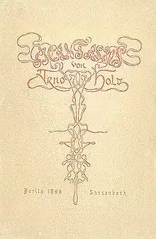Holz was born in Rastenburg, East Prussia (now Kętrzyn, Poland), the son of pharmacist Hermann Holz and Franziska née Werner. The family moved to Berlin in 1875. After his schooling, Holz worked in 1881 as a journalist but chose a living as a freelance writer. He was beset with financial difficulties for much of his life. He established contacts with the Berlin naturalist club Durch where he met famed writer Gerhart Hauptmann. In 1885 his poetry collection, Buch der Zeit (book of time) won the Schiller Prize. Around this time, Holz was fascinated by Darwinism.