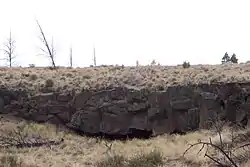 The Arnold Lava Tube System (or Arnold system) is series of lava tubes in Deschutes County, Oregon, in the United States. It is located several miles southeast of the city of Bend. The system starts in the Deschutes National Forest on the northern flank of Newberry Volcano, heads northeast onto BLM land before finally terminating on private property near Horse Ridge. The system acted as a conduit for the lavas from Lava Top Butte that later fed the Badlands rootless shield.[1] The lava flow that created the Arnold system is also referred to as the basalt of Lava Top Butte and is related to the Horse Cave lobe which is a lava flow that created the Horse Lava Tube System.[2] The lava flows of Lava Top Butte, the Badlands, the Horse system, and the Arnold system all have a geologic age around 80,000 years old.[1]
