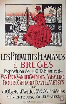 Museums started holding large loan exhibitions of historic art in the late 19th century, as also did the Royal Academy, but the modern "blockbuster" museum exhibition, with long queues and a large illustrated catalogue, is generally agreed to have been introduced by the exhibitions of artifacts from the tomb of Tutankhamun held in several cities in the 1970s. Many exhibitions, especially in the days before good photographs were available, are important in stimulating research in art history; the exhibition held in Bruges in 1902 (poster illustrated below) had a crucial impact on the study of Early Netherlandish painting.