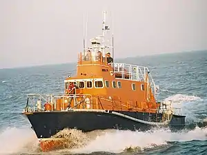 Ten 15.77-metre (51.7 ft) boats were built for the Canadian Coast Guard.[3] They were all built in Canada by Industrie Raymond Ltée of Sept-Iles, Quebec; East Isle Shipyard Ltd. of Georgetown, Prince Edward Island; Hike Metals & Shipbuilbing Ltd. of Wheatley, Ontario, with aluminium hulls except for the GRP-hulled British-built prototype (CCGS Bickerton) which was built by Halmatic, Southampton. They are considered "high endurance" lifeboats staffed by a crew of four. The first vessels of this class were ordered in 1990.[8] The Canadian Coast Guard also maintains approximately three dozen smaller Cape-class motor lifeboats.[9] They are considered "medium endurance" lifeboats.