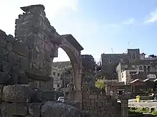 - The arch of the lesser church: the church itself is ruined. An arch is still standing there known locally as "The Gallows" (Arabic: المشنقة al-Mashnaqah) with grape motif decorations.