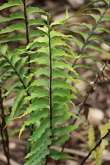 Asplenium parvum is a plant in the spleenwort group of ferns. An epiphytic fern, seen growing on rocks and trees in tropical rainforests, usually at high altitude in Queensland. The specific epithet parvum is derived from latin, meaning "few or small". Described by Reverend Watts from a cultivated specimen growing in Gladesville, New South Wales. It first appeared in scientific literature in 1914 in the Linnean Society of New South Wales.[1]