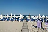 Near the modern town, the ruins of a Roman station of the Via Egnatia are preserved which was called Pennana.[2] According to a manuscript of Simonopetra monastery in Mount Athos, Asprovalta was built in the 16th century. Its first name was Aspra Valta. After the Asia Minor Disaster, 54 families from Erenköy of Troas (near the ancient city of Ophryneion) were installed forcefully in Asprovalta.[3] Erenköy was located in an important geographical position from a military point of view. During WW1 near to the village a Turkish artillery had been settled, which was bombarded by the Allied ships.[4] After the truce of Moudrou (30-10-1918) with which the war ended.