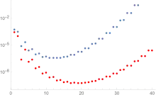 For any fixed , the absolute value of the error term decreases, then increases. The minimum occurs at , at which point . This bound is said to be "asymptotics beyond all orders".