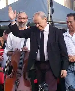 Caño 14, the storied tango hall, closed in 1987. It reopened ten years later, however, relocating to 2134 Vicente López Street (in the Recoleta section of Buenos Aires). Stampone retired as President of SADAIC, succeeded by Ariel Ramírez, in 1993; but remained in its board of directors. He presided over Konex Award juries in 1985 and 2005, and in 2000, was named Music Director of the Juan de Dios Filiberto National Orchestra of Argentine Music. He was later named director of the City Orchestra of Buenos Aires, while continuing his duties at the Filiberto Orchestra,[6] and was featured in his role as conductor in Miguel Kohan and Gustavo Santaolalla's 2008 ode to aging Tango greats, Café de los maestros.[4]