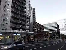 Historically, much of the transport to and around the CBD post-1950s was by private vehicles, partly because the CBD provides numerous parking buildings[8] and parking spaces associated with office buildings, and is almost totally surrounded (and easily accessible) by motorways.