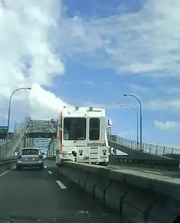 The Auckland Harbour Bridge is an eight-lane motorway bridge over the Waitematā Harbour in Auckland, New Zealand. It joins St Marys Bay on the Auckland city side with Northcote on the North Shore side. It is part of State Highway 1 and the Auckland Northern Motorway. The bridge is operated by the NZ Transport Agency (NZTA).[4] It is the second-longest road bridge in New Zealand, and the longest in the North Island.[5]