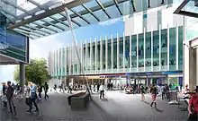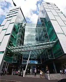 In 2016, the university invested significantly in the construction of the Mana Hauora (MH) Building. Construction of MH was completed in December 2016, and was officially opened by Prime Minister Bill English in March 2017.[21] As the largest building on campus, MH is now the new heart of the campus and incorporates a number of sustainability design features. In 2017, three awards were given in recognition of the new MH Building at the New Zealand Institute of Architects (NZIA) Auckland Regional Awards.[22]