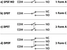 Three terms are used to describe the configuration of a relay: pole, throw, and form.[5]