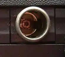 In 1928, the Connecticut Automotive Specialty Company (Casco) in Bridgeport patented its version of an automotive cigarette lighter, which used a cord and reel.[6] In the reel-type lighters, the igniter unit was connected with a source of current by a cable which was wound on a spring drum so that the igniter unit and cable could be withdrawn from the socket and be used for lighting a cigar or cigarette. As the removable plug was returned to the socket, the wires were reeled back into it. The circuit was closed either by pressing a button or removing the igniter from its socket.[4]