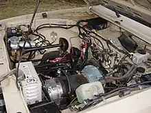 Hobbyists have been converting cars to EVs since at least the 1960s. Historically, these have used aircraft starter motors and lead-acid batteries; several books have been written to document and guide these conversions,[12] including The Complete Book of Electric Vehicles (Shacket, 1979),[13] How to Convert to an Electric Car (Lucas & Riess, 1980),[14] Convert It (Brown & Prange, 1993),[15] and Build Your Own Electric Vehicle (Brant, 1994).[16] Many recent non-factory electromods are implemented by extracting and adapting the complete drivetrain (traction motor(s), battery, controller, and inverter) from an existing mass-produced EV, such as Tesla. East Coast Defender demonstrated a Tesla EV-sourced powertrain conversion of a 1969–96 Range Rover Classic, developed with Electric Classic Cars, to Motor Trend in 2021.[17] In October 2019 there were no purpose-built crate engine EV kits available commercially, but such projects were in development.[18] For example, EV West announced their Revolt Tesla Crate Motor in 2020, which married an electric traction motor from Tesla with a gear reduction unit and ended in a universal joint yoke, a suitable interface for a driveshaft.[19] Mechanically, the motor is fitted with mounts compatible with Chevrolet small-block engines to take advantage of numerous small-block repower kits.[20]