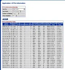 The Switches also include an integrated packet sniffer built into every port that can export the information on to a web page report (see the jpg to the right, an example of top 25 talkers on a switch) or export the information to an IPFIX server. The web base reports will report top 10, 25, or 50 talkers. Reports can also be created and sorted on source address, destination address, TOS, protocol, port number, source or destination ports, packet count, byte count, or first or last packet times. Multiple ports can be monitored simultaneously or individually.[9] A license is not required to enable this function. The Management of the system is accomplished through a serial console (which presents both a menu structure and a command line interface), a web interface or with the device manager tools, which uses SNMP to communicate with the device.