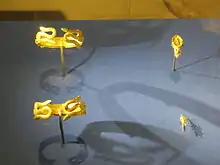 The foundation of the city in an area previously inhabited by the Sicani and invaded by the Sicels in the 13th-12th centuries BC, is perhaps connected to the city of Hybla Major. Hybla was the name of a pre-Greek divinity, later identified with the Greek Aphrodite. The Greeks colonized there in the 8th century. An important hoard of Ancient Greek gold jewellery and over 300 coins was found in the vicinity of Avola in 1914. Estimated to date between 370 and 300 BC, the extant items of ornate jewellery are now housed in the British Museum and comprise a pair of bracelets with double snake-heads, a finger-ring and an ear-ring with the figure of Eros.[5]