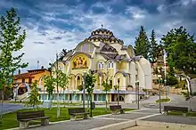Refounded in 1760 by Christian settlers from adjoining areas, they chose it as their new home due to its proximity to the Axios River, near the ruins of ancient town Atalanti. The town form part of the Ottoman Empire until the early 20th century. In the Greek revolution of 1821, inhabitants of Axioupolis and other villages, fought against Ottomans. The family of Papazafiriou Stamatiadi from Idomeni gave the most famous Greek fighters of 1821.[5] The Ottoman troops defeated the rebels in the area, and the revolution continued only in Southern Greece. Construction of Axioupolis' first church, Saint Dimitrios (Greek: Αγίου Δημητρίου), started in 1843 after Christians were given the right to build churches and schools by the Ottomans. Saint Dimitrios was completed in 1859. During the national competitions in the area, a lot of locals resisted in the Internal Macedonian Revolutionary Organization (IMRO),[6] while others participated in the struggle led by IMRO. A committee of IMRO was founded in Boymitsa in 1896. Its leader was the local Bulgarian teacher Filip Dimitrov.[7] Dellios Petkou Topalis killed in 1898 by Bulgarians.[6]