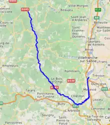 The Azergues (French pronunciation: [azɛʁɡ]) is a river in the department of Rhône, eastern France. It is a right tributary of the Saône, which it joins in Anse. It is 62.4 km (38.8 mi) long.[1] Its source is in the Beaujolais hills, near Chénelette. The Azergues flows through the following towns: Lamure-sur-Azergues, Le Bois-d'Oingt, Chessy, Châtillon, Chazay-d'Azergues and Anse.[1]