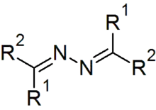 Azines are a functional class of organic compounds with the connectivity RR'C=N-N=CRR'. These compounds are the product of the condensation of hydrazine with ketones and aldehydes, although in practice they are often made by alternative routes. Ketazines are azines derived from ketones.[1] For example, acetone azine is the simplest ketazine. Aldazines are azines derived from aldehydes.[2]