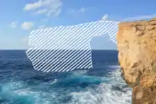 The Azure Window (Maltese: it-Tieqa Żerqa), also known as the Dwejra Window (Maltese: it-Tieqa tad-Dwejra), was a 28-metre-tall (92 ft) natural arch on the island of Gozo, located just off the shores of Malta. The limestone feature, which was in Dwejra Bay close to the Inland Sea and Fungus Rock, was one of the island's major tourist attractions until it collapsed in stormy weather on 8 March 2017. The arch, together with other natural features in the area, has appeared in a number of international films and media productions.