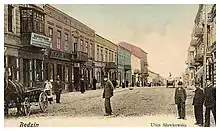 Until World War II, Będzin had a vibrant Jewish community. According to the Russian census of 1897, out of the total population of 21,200, Jews constituted 10,800 (around 51% percent).[14] According to the Polish census of 1921 the town had a Jewish community consisting of 17,298 people, or 62.1 percent of its total population.[15] In September 1939, the German Army (Wehrmacht) overran this area, followed by the SS death squads (Einsatzgruppen), who burned the Będzin synagogue and murdered 200 Jewish inhabitants.[16] A Będzin Ghetto was created in 1942. Eventually, in the summer of 1943, most of the Jews in Będzin were deported to the nearby German Auschwitz concentration camp. Since Będzin was one of the last Polish communities to be liquidated, there are a relatively large number of survivors from there, and an extensive collection of their personal photographs were recovered, offering photographic insight into the pre-war life there.