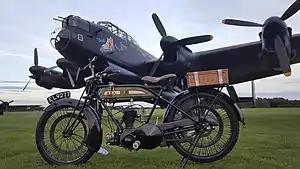 This BSA was introduced as one of the last flat-tank models, the Model L that was available with either a side-valve or an overhead-valve 349cc, four stroke engine with bore and stroke of 72mm x 85.5mm. The overhead-valve model was the company's first such model but it otherwise shared all of its running gear with its side-valve stablemate including a three-speed, hand-change, constant-mesh gearbox, an Amac carburettor and chain final drive. Front and rear braking was achieved by a friction pad being applied to a dummy rim built into the wheel spokes – not an uncommon practise on veteran machines and derived from building similar brakes onto a belt-drive rim. Although lubrication was achieved with a mechanical oil pump, the rider could adjust the oil flow depending upon the engine's duty conditions via an adjuster mounted on the tank that included a sight glass through which to observe the flow rate.