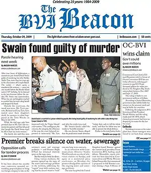 The BVI Beacon is a weekly British Virgin Islands newspaper founded in June 1984 and published on the island of Tortola. The Beacon is owned and published by local businessman Russell Harrigan, also the publisher of Business BVI. The online version of the newspaper was founded on February 14, 2001.[3]