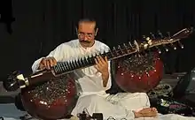 Baha'ud'din Mohiuddin Dagar (born 1970) is the rudra veena player and son of famous north Indian musician Zia Mohiuddin Dagar.[1][2] He plays rudra veena with the dagarbani style. He represents the 20th generation of Dagar lineage, referring to Nayak Haridas Dagar of the 16th century. However, he traces his ancestry to Baba Gopal Das, who converted to Islam, and became Baba Imam Baksh in the 18th century, making him the representative of the 8th generation.[3]
