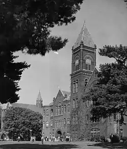 Called "Old Main" until 1948, when it was renamed to honor Reverend George P. Baity, it served as the only building on the Missouri Valley College campus for six years. During that time it served every purpose, providing the space for classrooms, offices, laboratories, dormitories, a museum, kitchen, cafeteria, chapel, library, conference rooms, and two gymnasiums for men and women. Some modifications have been made to the original building such as the removal of the upper portion of the bell tower in 1959.[2] Today, Baity hall continues to serve as classroom and office space for faculty and administration of Missouri Valley College.[3] The former chapel has been converted into the Learning Center which serves as a study, test taking and tutoring area for students.[4]
