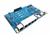 Banana Pi also can run NetBSD, Android, Ubuntu, Debian, Arch Linux, Raspberry Pi OS operating systems, though the CPU complies with the requirements of the Debian armhf port.[2] Most models use a MediaTek or Allwinner SoC (system on chip) with two or four ARM Cortex cores.