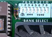 An eight-position DIP switch on such cards is used to select one (or more) of eight banks of memory.
