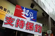 Baodiao movement (Chinese: 保釣運動, literally Defend the Diaoyu Islands movement) is a social movement originating among Republic of China students in the United States in the 1970s, and more recently expressed in Mainland China, Hong Kong and Taiwan that asserts Chinese sovereignty over the Diaoyu/Senkaku Islands.[1] The territorial right to the islands is disputed among the People's Republic of China, the Republic of China, and Japan. Action Committee for Defending the Diaoyu Islands and China Federation for Defending the Diaoyu Islands are the main representative organizations in the movement.