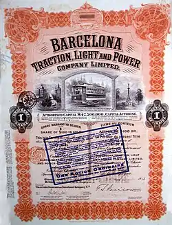 Barcelona Traction, Light and Power Company (BTLP) (locally known as La canadiense in Spanish and La canadenca in Catalan, "The Canadian") was a Canadian utility company that operated light and power utilities in Catalonia, Spain. It was incorporated on September 12, 1911 in Toronto, Ontario, Canada by Frederick Stark Pearson. The company was developed by Belgian-American engineer Dannie Heineman.