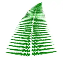 The Barnsley fern is a fractal named after the British mathematician Michael Barnsley who first described it in his book Fractals Everywhere.[1] He made it to resemble the black spleenwort, Asplenium adiantum-nigrum.