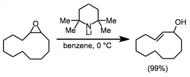 Five- and six-membered rings containing epoxides afford allylic alcohols upon treatment with amide bases; however, reactions of medium-ring epoxides may be complicated by competitive transannular C–H insertion or ketone formation.[11]