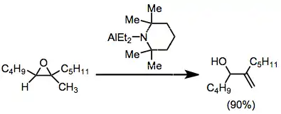 Terminal epoxides suffer from the limitation that competitive nucleophilic addition of the base to the unsubstituted epoxide carbon may take place. Non-nucleophilic, sterically hindered bases have been used to isomerize terminal epoxides successfully, however.[9](5)
