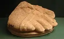The temple is of a relatively modest size, with the stylobate measuring 38.3 by 14.5 metres[6] containing a Doric peristyle of six by fifteen columns (hexastyle). It has been proposed that there was a central space in the roof left open to admit light and air but there is no proof of this feature. The temple was constructed entirely out of grey Arcadian limestone[7] except for the Bassae Frieze which was carved from marble (probably in ancient times colored with paint). Like most major temples it has three "rooms" or porches: the pronaos, plus a naos and an opisthodomos. The naos may have housed a cult statue of Apollo, although it is also surmised that the single 'proto-Corinthian' capital discovered by Charles Robert Cockerell and subsequently lost at sea, may have topped the single column that stood in the centre of the naos, and have been intended as an aniconic representation of Apollo Borealis. The temple lacks some optical refinements found in the Parthenon, such as a subtly curved floor, though the columns have entasis.[8]