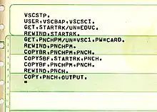 CDC NOS batch file to get the file STARTRK and output it to the card punch