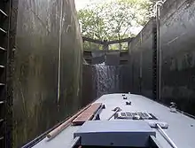 The next stage of Bath Deep Lock is numbered 8/9 as two locks were combined when the canal was restored in 1976. A road constructed while the canal was in a state of disrepair passes over the original site of the lower lock.[3] The new chamber has a depth of 5.92 metres (19 ft 5 in),[4] making it Britain's second deepest canal lock.[5]