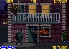 Batman is a horizontally scrolling beat 'em up arcade game released by Atari Games, Midway Games, Data East and Namco in 1990 in North America, 1991 in Japan and 1991 in Europe. The storyline is based on the eponymous 1989 movie. It features stages based on locations in the film, including first-person control of the Batmobile and the Batwing. The game features audio clips of Batman (Michael Keaton) and the Joker (Jack Nicholson) as well as digitized photos from the movie.[1]