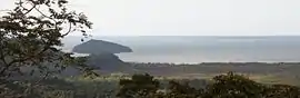 ![]() L-R looking south-east: Cape Kimberley, Snapper Island, Low Islets (Low and Woody Islands) with Batt Reef beyond | |